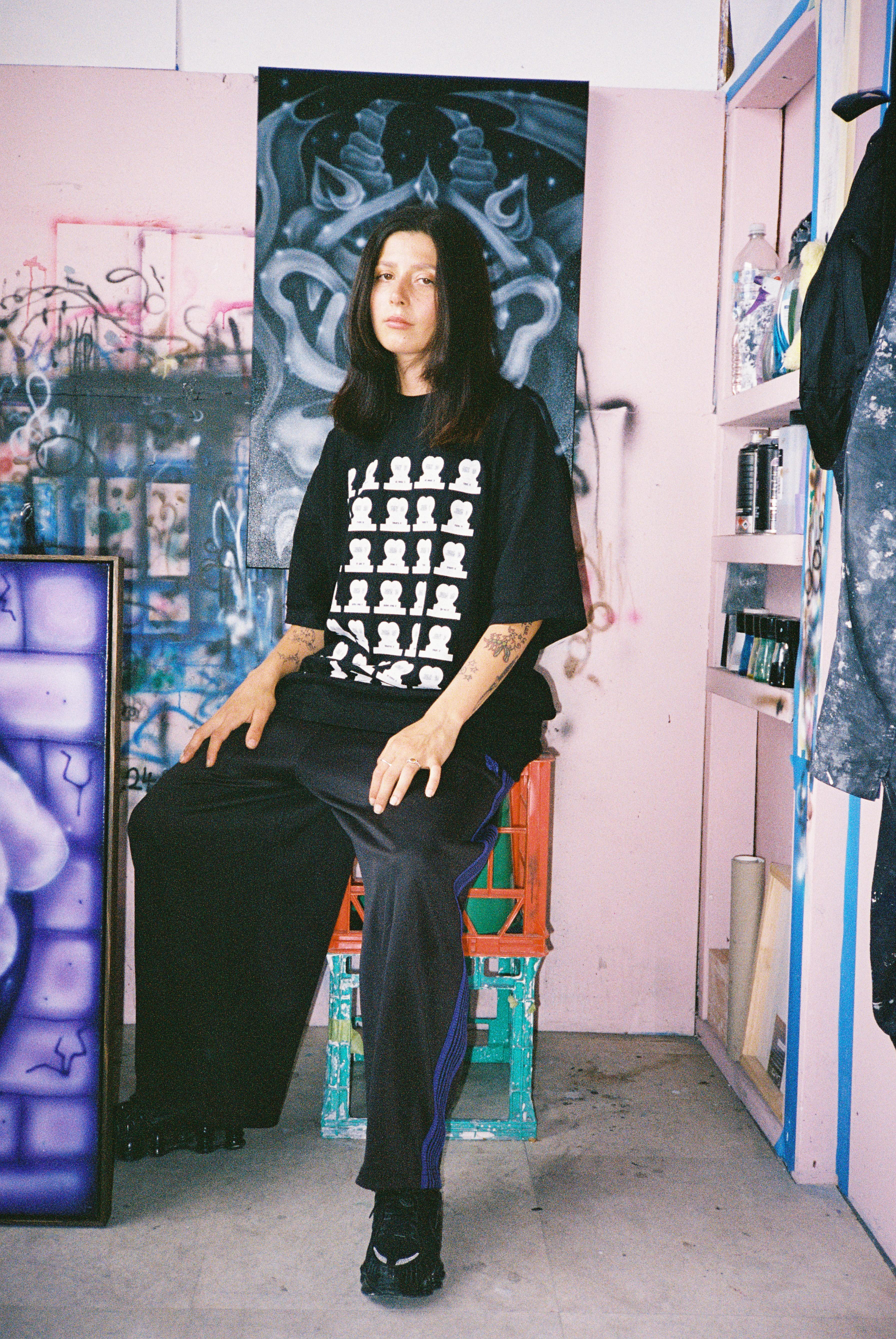 In about 2021, I was into making clothes and had started getting into screen printing. At the time, I was lucky to have access to screen printing equipment and was making garments at a friend's studio. There was an airbrush machine there, so I gave it a go. I found it pretty challenging at first, but once I got the hang of it, I became obsessed. I loved the speed, the flow and feel of it.