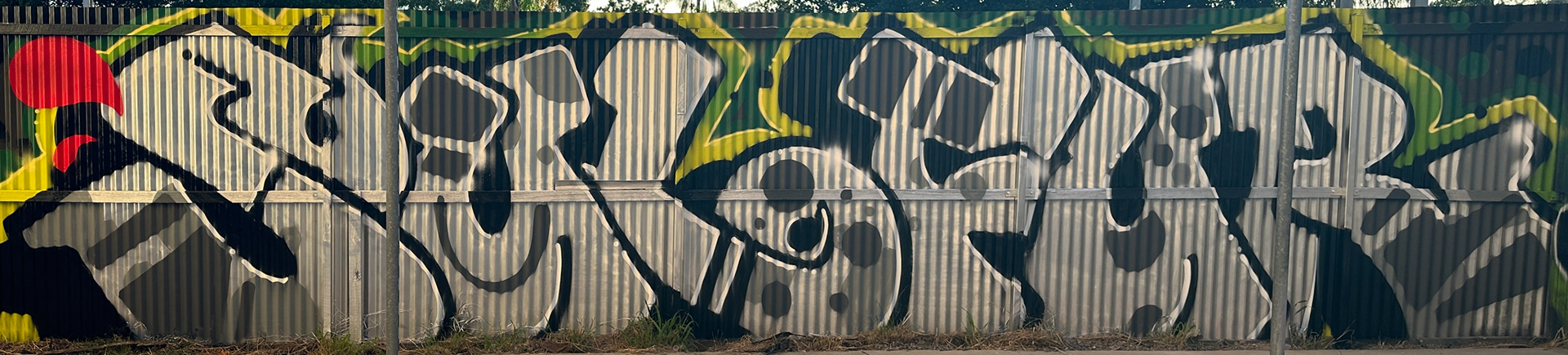 Graffiti installation in the courtyard for the first launch exhibition. Pieces by Moola & others.